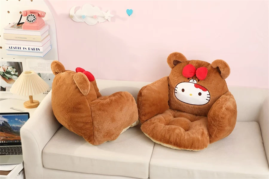 Comfortable Hello Kitty Seat Cushion Kawaii Plush Office Chair Pad with Back Support Cartoon Sitting Cushion Chair Home Decor